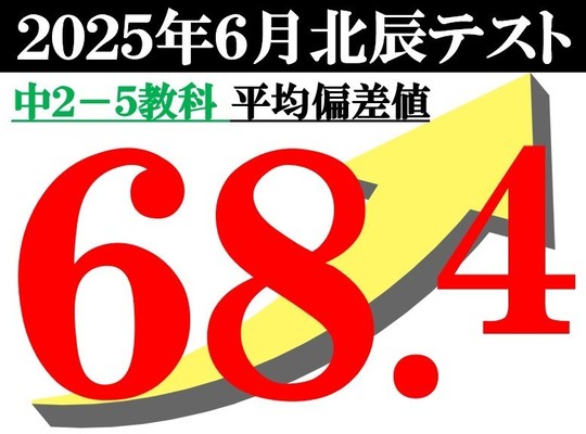 【中2-6月北辰テスト】5教科偏差値の塾生平均「68.4」